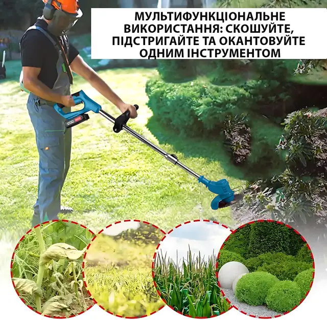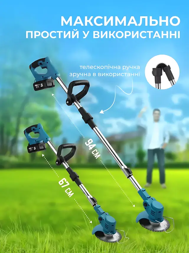 Акумуляторна газонокосарка з колесами забезпечить вам ефективний і зручний догляд за газоном без необхідності підключення до електромережі. Завдяки напрузі 48 В він здатний протриматися до 60 хвилин на одному заряді, що займає всього 2 години на повному заряді. Швидкість обертання становить 8000 оборотів в хвилину, що забезпечує швидке і ефективне косіння. Ця газонокосарка ідеально підходить для ефективного та комфортного догляду за газоном, забезпечуючи достатню потужність та простоту використання завдяки своєму бездротовому принципу роботи.